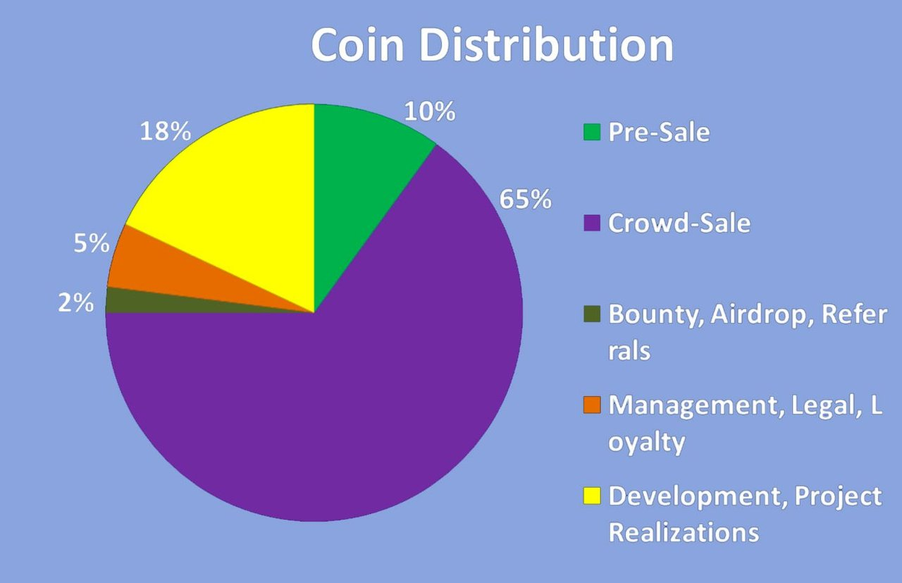 In total, developers plan to issue 1 billion coins from them, only 60% will be available for public sales. The rest of the coins with an initial value of $ 0.1 will be distributed as follows (see figure):